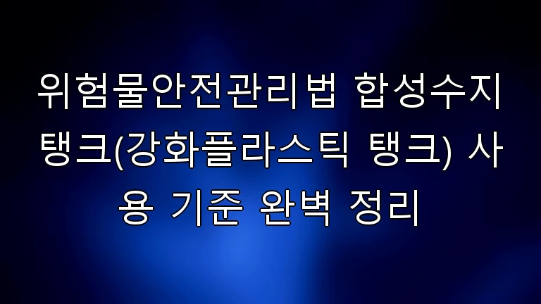 1. 합성수지탱크의 의미와 법적 위치