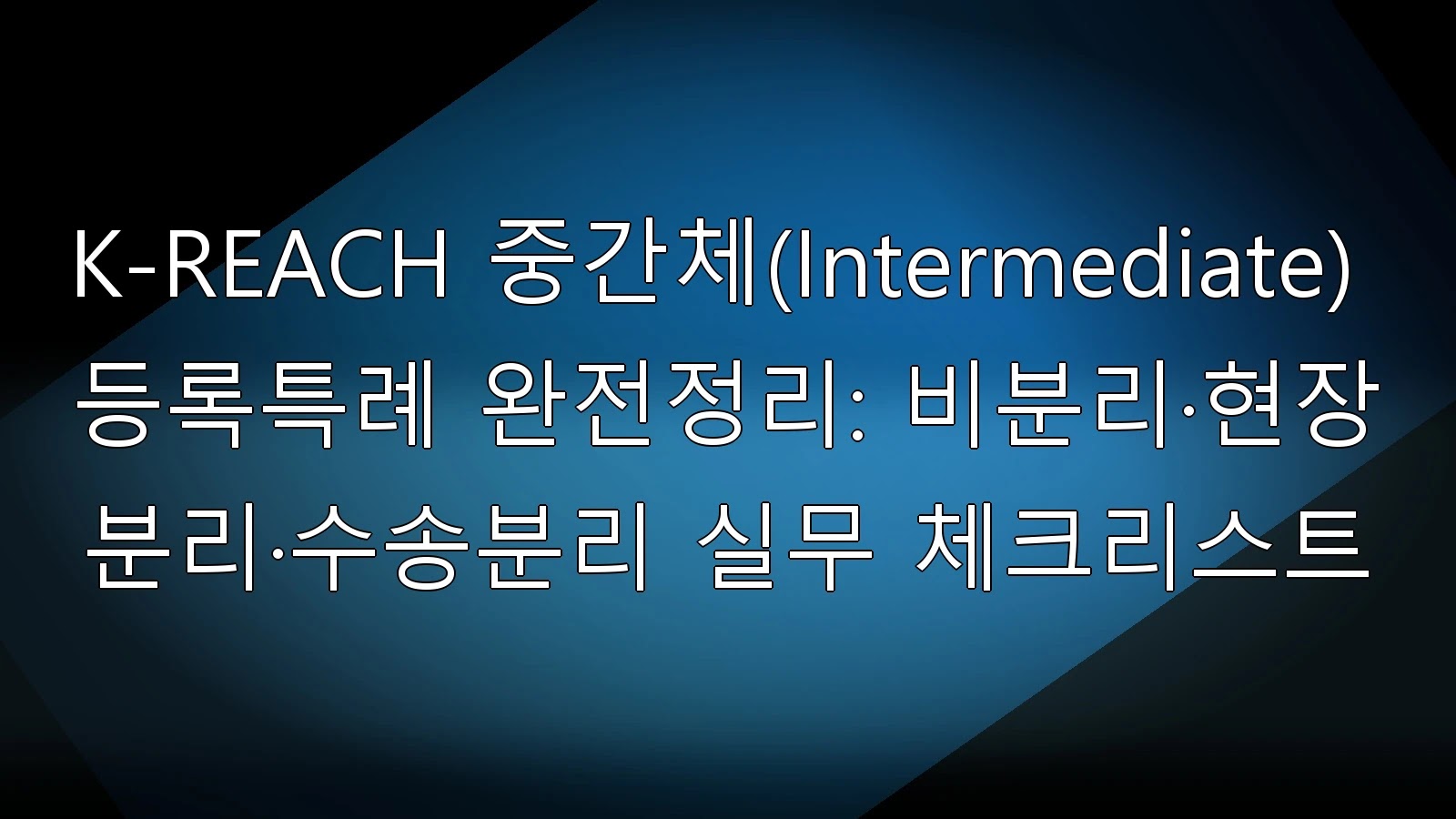 이 글의 목적은 K-REACH에서 말하는 중간체(Intermediate)를 비분리중간체, 현장분리중간체, 수송분리중간체로 정확히 구분하고, 각 유형별 등록면제 또는 등록특례(제출자료 생략) 요건과 실무 입증자료를 한 번에 정리하여 현장에서 바로 적용할 수 있도록 돕는 것이다.